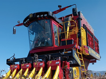 BG大游集团4MZ-4A型自走式棉花收获机是由本公司研发团队自主研发的机型,采用小尺寸设计,配备国四发动机,适合中小地块作业。