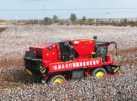 BG大游集团国四新能源型自走式圆捆打包棉花收获机,勇于突破,将新能源技术运用其中,其操作简单、维护方便、采净率高,适合中小型棉花种植区域使用。
