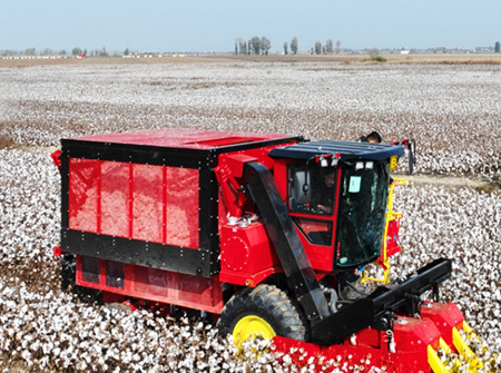 4MZD-3C型,自走式圆捆打包棉花收获机由新疆BG大游集团自主研发生产可一次性可完成对棉花的采摘、输送、集箱打包、卸棉作业。