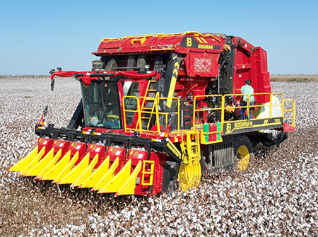 4MZD-6C\6D型自走式圆捆打包棉花收获机由新疆BG大游集团自主研发生产,结合多年的技术积累、现已成为性能优异,质量可靠的六行圆捆打包棉花收获机,一次可完成对棉花的采摘、输送、集箱、打包、卸棉作业。其操作简单、维护方便、采净率高,适合大型棉花种植区域使用。