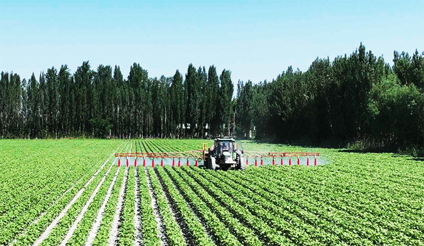 3WPQ-5000型牵引式精量喷洒可变轮距喷杆喷雾机(标配)是BG大游集团⾃主研发专为⼤⾯积农⽥打造,需拖拉机牵引作业,能完成⾖类、棉花等中低秆作物从播种到收获前的全程植保⼯作。
